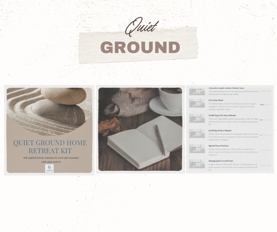 Quiet Ground is for you if you want a guided container without fixing, forcing, or performing calm.